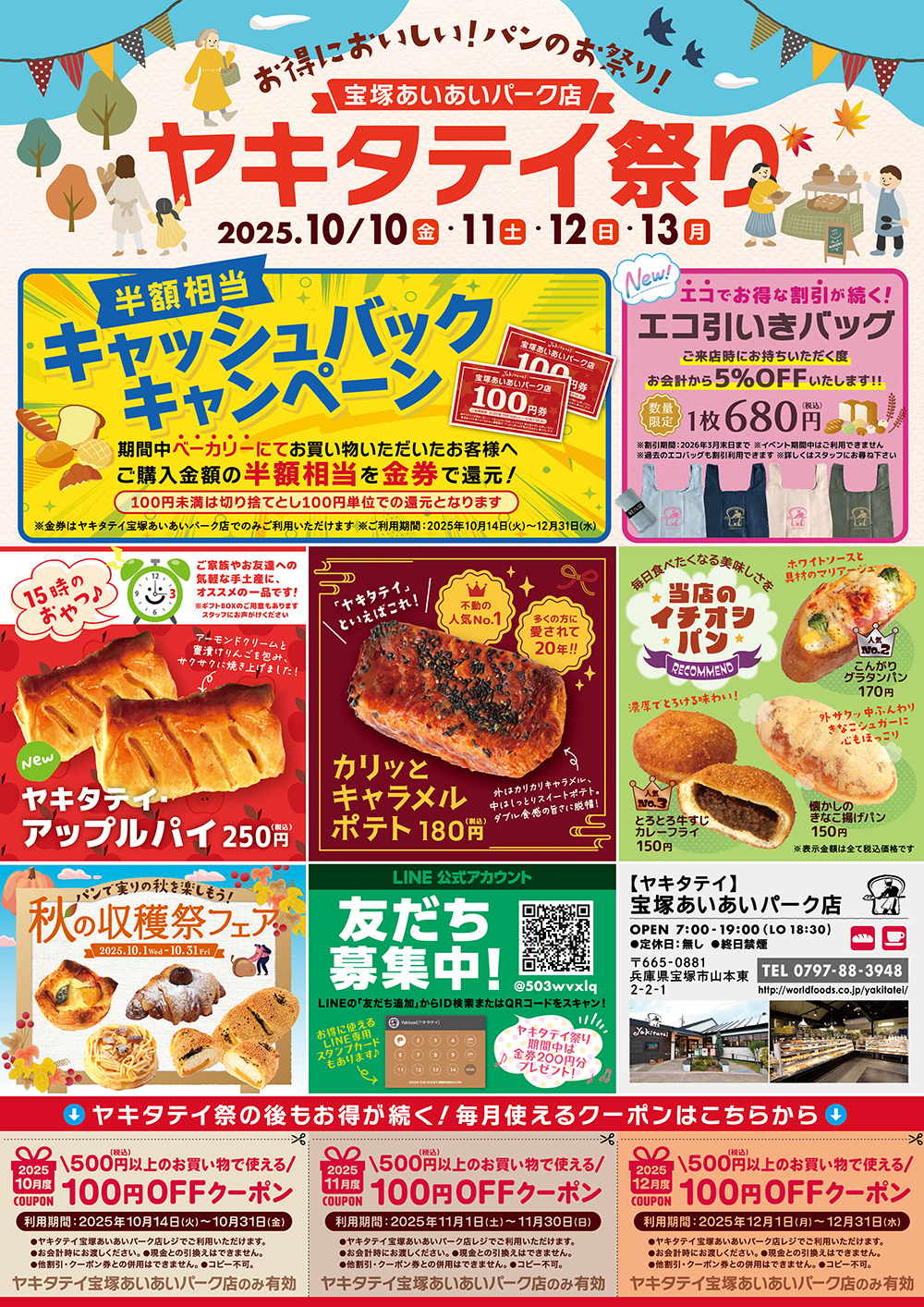 ①[宝塚あいあいパーク店]10/10(金)・11(土)・12(日)・13(月・祝)